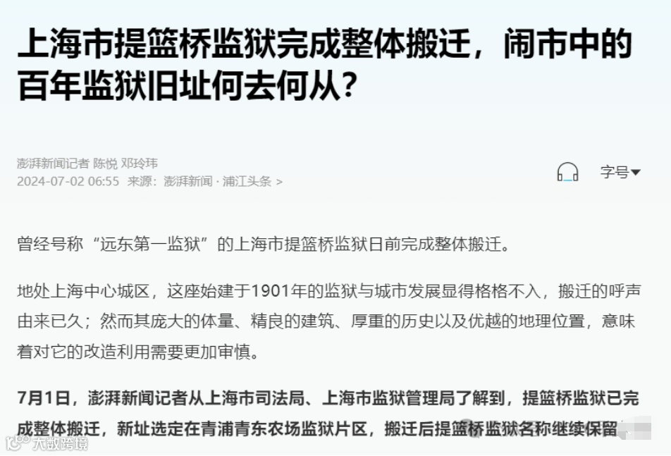 上海提篮桥监狱搬迁