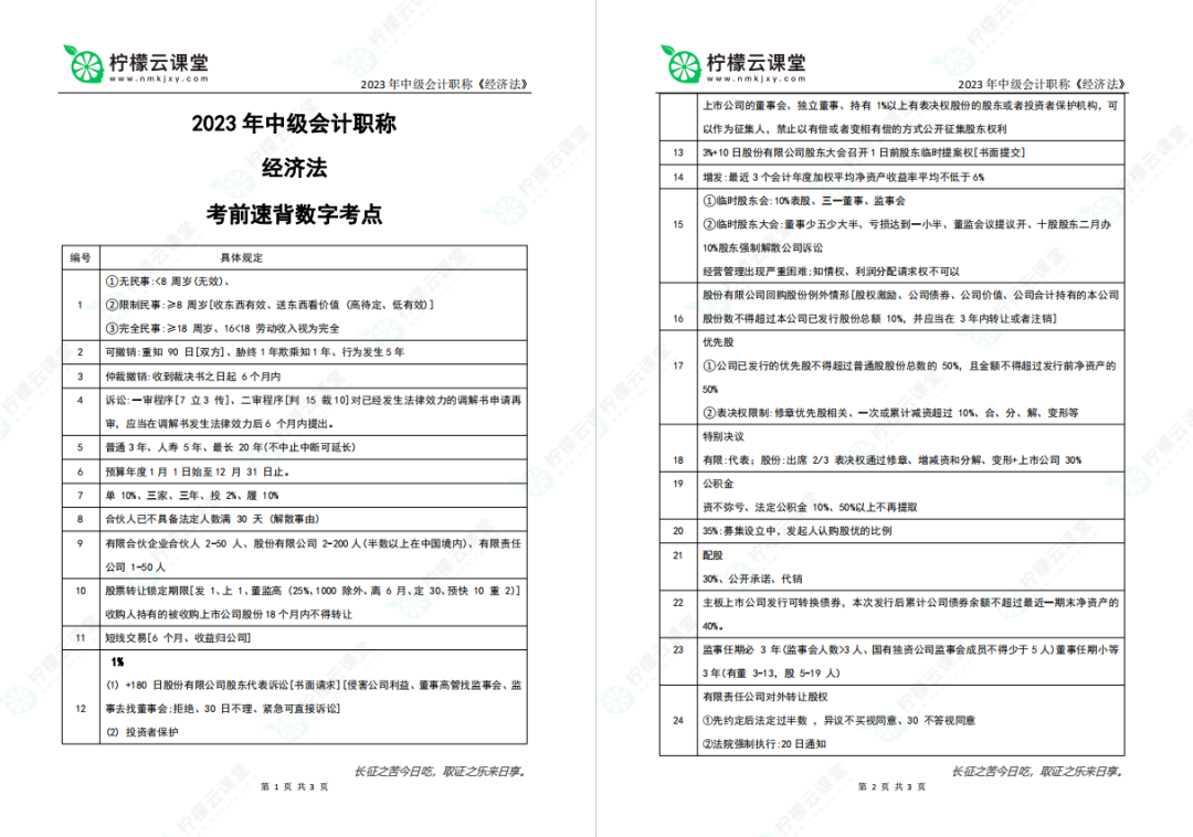 因此,我们柠檬云课堂中级三位主讲老师,应同学们的需求,把中级考试三科精华中的精华进行了归纳和汇总,压缩成三页纸,同学们可以打印出来,最后冲刺时刻时不时拿出来背诵,定有大收获!