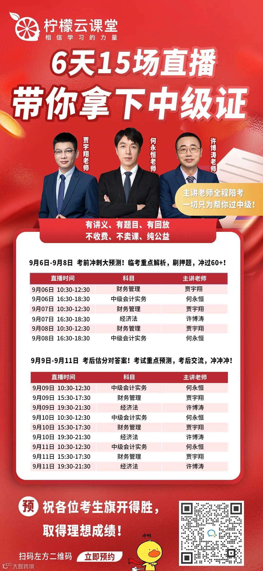 另外,我们三位中级老师正在进行考前冲刺预测公开直播课,同学们可以加群领取预测卷等冲刺资料和参加考前公开课。