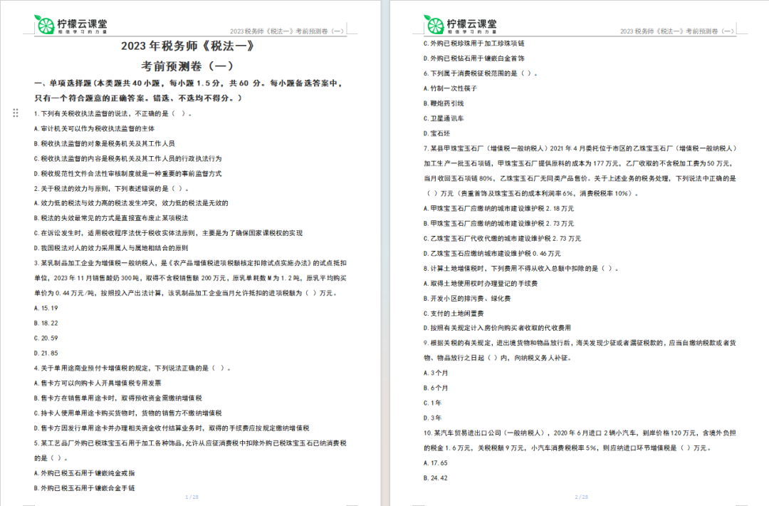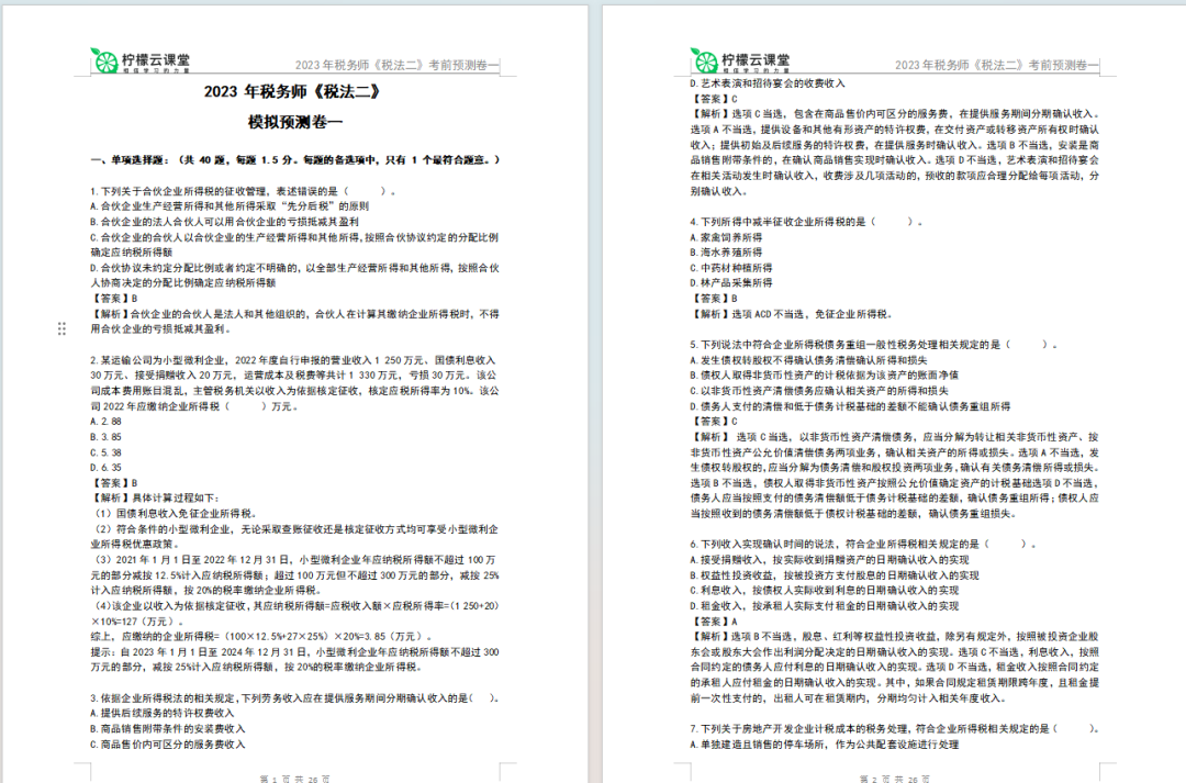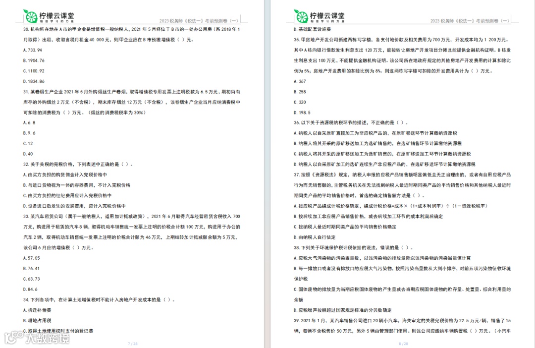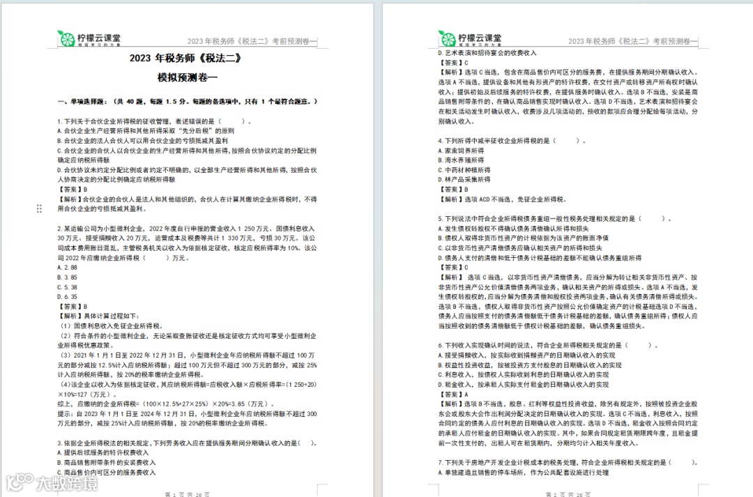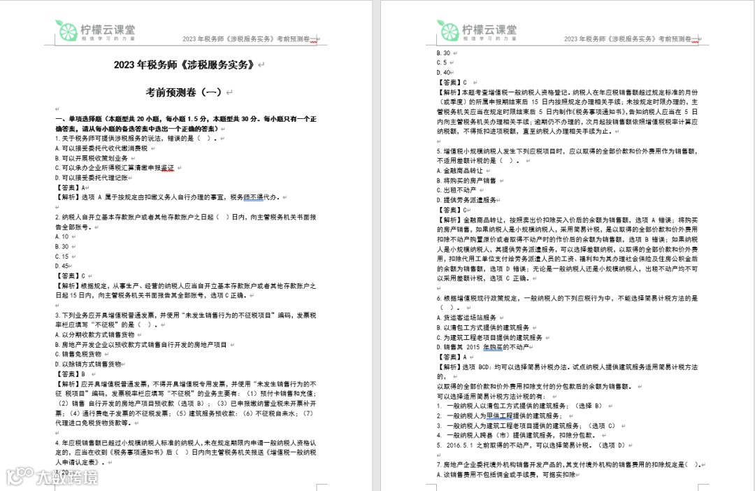 模考预测卷一直是冲刺的秘密武器。去年,有200+和你一样状态的学员,在最后2个月里突击刷题,成功逆袭上岸税务师!