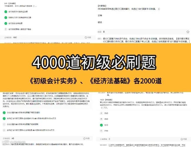 精选2000道《初级会计实务》必刷题+2000道《经济法基础》必刷题,题题是精华,道道划重点。