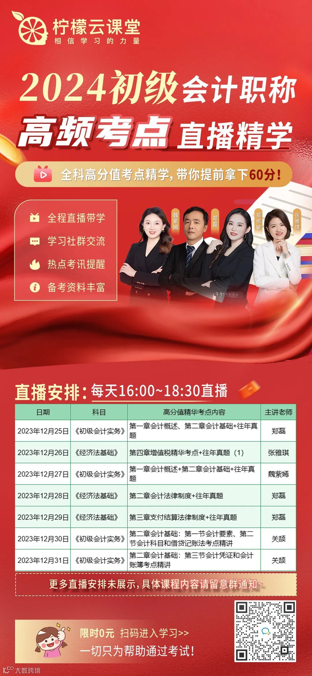 好消息来了!准备参加2024年初级会计职称考试的你,一定不要错过这个拿捏2024初级通关密码的大好机会!