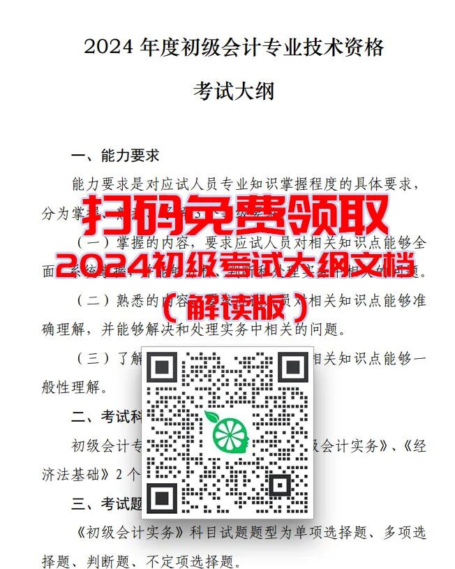 2024初级会计职称考试大纲公布了!还没拿到考试大纲的同学,可以扫码联系老师领取老师批注版!