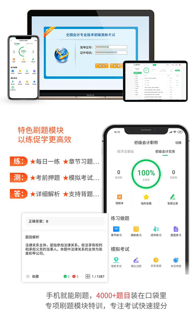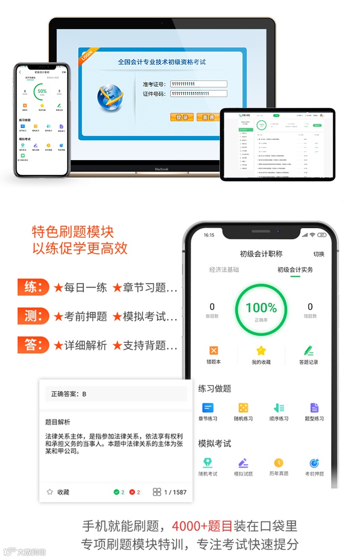 学练结合才是备考效率的保障,因此,为了帮助大家通过考试,我们还配套了题源优质的智能题库,题目、答案、解析一应俱全,而且刷题功能多样,更利于备考。