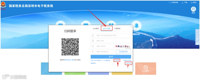 →我要办税→自然人登录电子税务局,网址:https://etax.shenzhen.chinatax.gov.cn/bszm-web/apps/views/beforeLogin/indexBefore/pageIndex.html#/