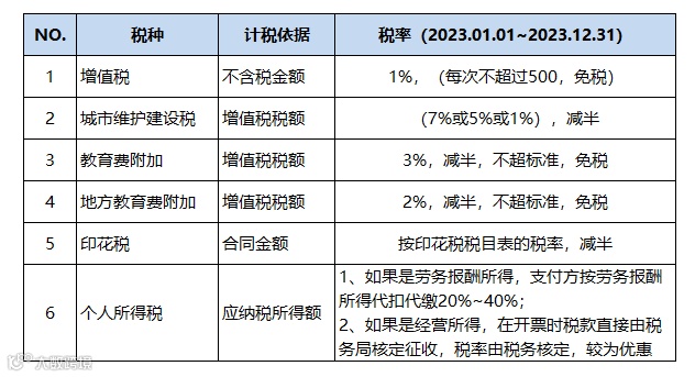 为了方便大家直观地理解,财叔以如下表格的形式把2023年个人代开发票需要缴纳的税种和税率呈现给大家: