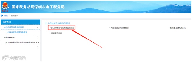 回到首页,点击“我要查询”→“办税进度及结果查询”,进入选择“网上申请文书结果查询及领取”进入查询,输入申请日期,点击“查询”即可查询事项办理进度。