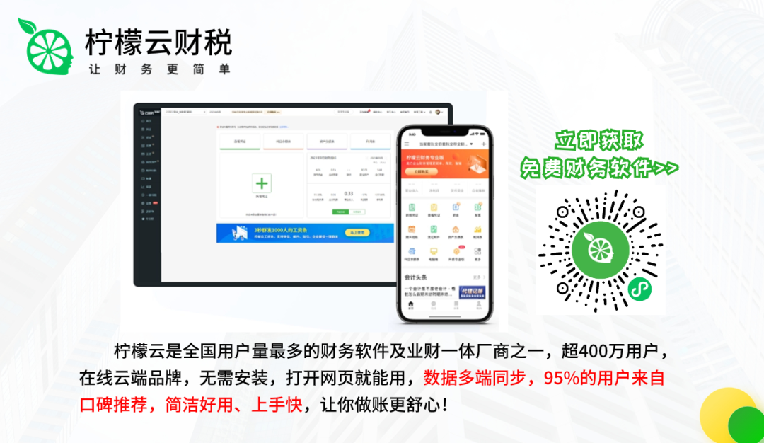 推荐一款超400万企业会计在用的财务软件——柠檬云财务软件(免费版长期免费使用),用手机微信扫码就可以免费领取使用,长期有效。