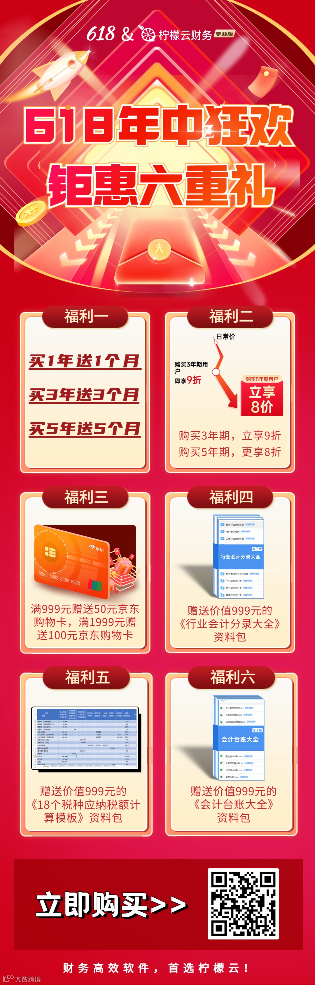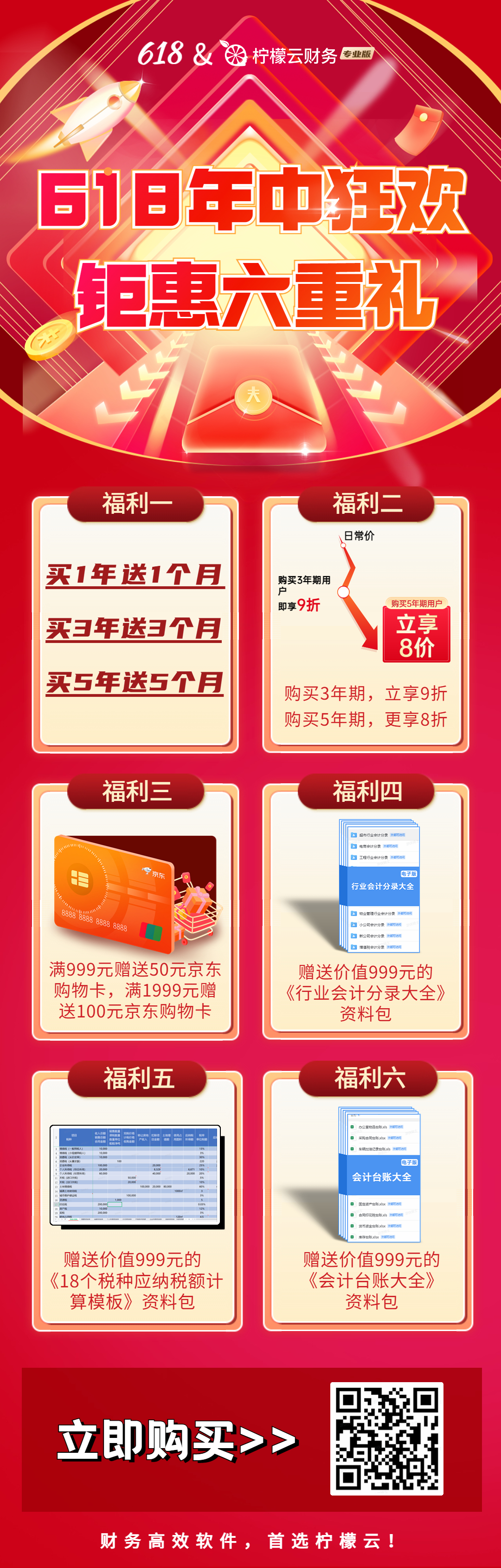 为感谢大家对柠檬云的支持!不管您是抽奖开始之前参与活动的,还是现在新购/续费的,只要您在活动期间6月5日-6月18日购买柠檬云财务软件(云财务专业版/云业财/云代账)满498元即可参与本次抽奖活动!