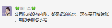 只有刚开业的新公司建账比较简单,究其原因,一切从0开始,没有旧凭证,没有期初数。期初数录入对于会计来说是个大难题,看看会计群里的小伙伴聊天就知道了:
