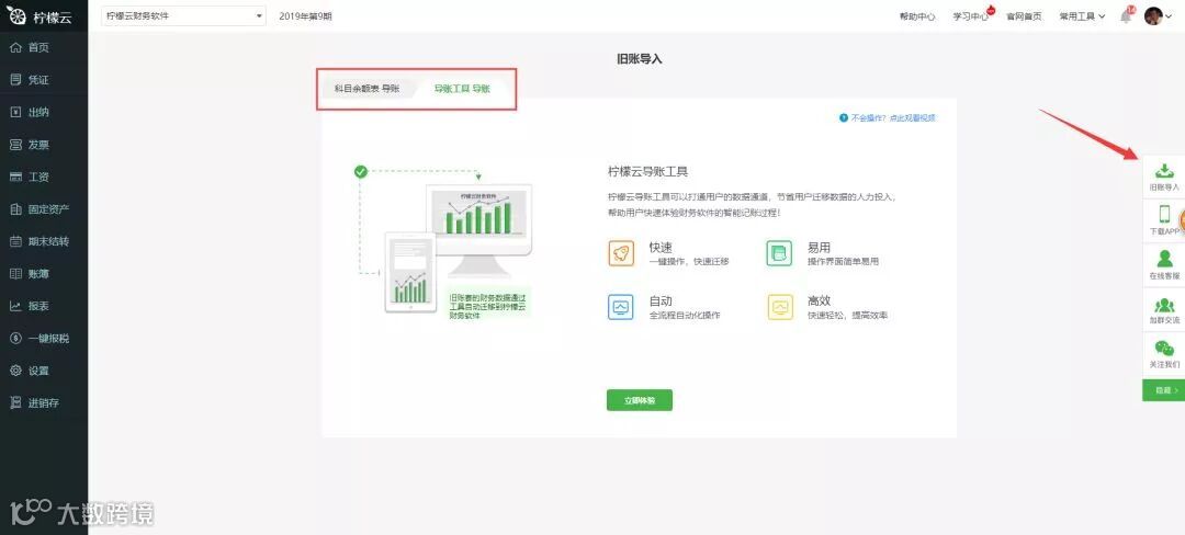 • 只要安装柠檬云导账工具,就能在短时间内迁移百套账!