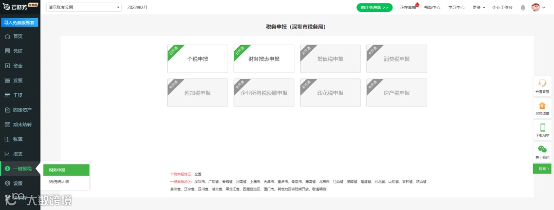 ②一键报税,对接税务系统,在财务软件里就能完成税务申报。