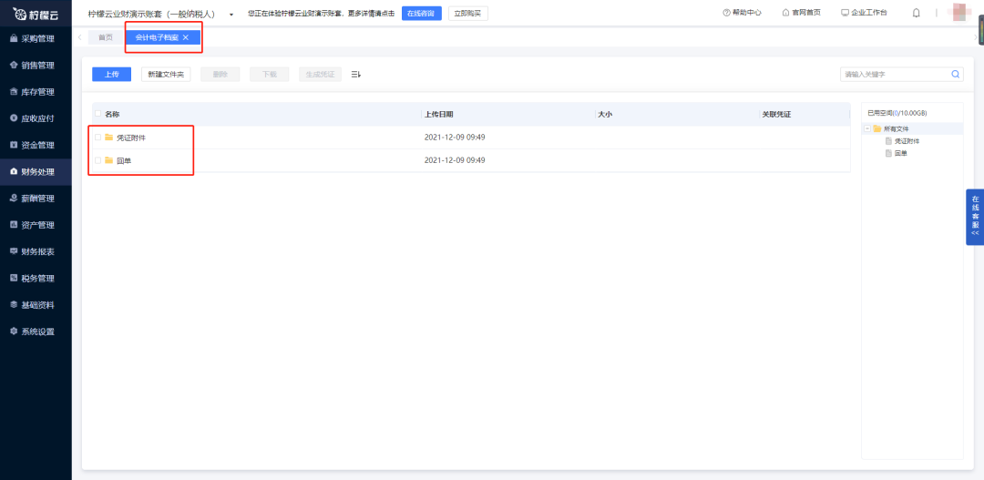 提交票据后信息能同步上传到柠檬云业财【财务处理】-【凭证】-【会计电子档案】中,财务人员可以进行审核或驳回的操作