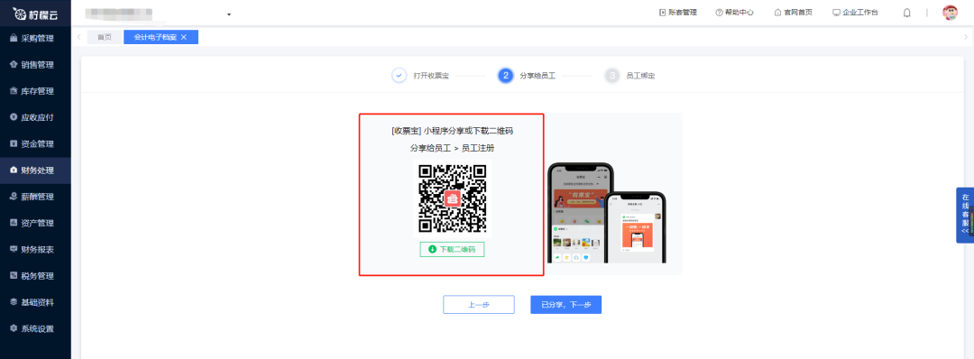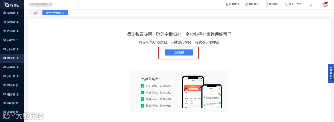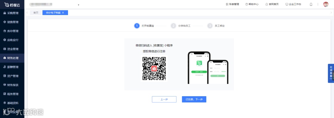 1.点击【财务处理】-【会计电子档案】-【收票宝上传】