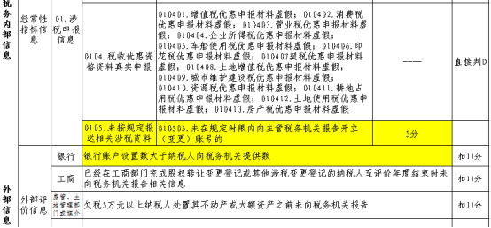“经常性指标信息”010505.未在规定时限内向主管税务机关报告开立(变更)账号的,扣5分;