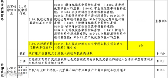 “外部评价信息”银行账户设置数大于纳税人向税务机关提供数的,扣分11分;(5分是看的税务局的内部信息,扣11分看的是银行的外部数据)