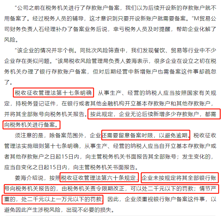 企业须重视银行账户备案这件事,以避免因此产生涉税风险,出现不必要的损失。