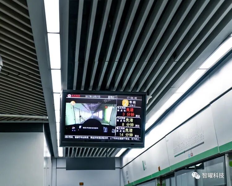 天花板上挂着一块屏幕,上面显示下一班地铁即将在3分钟后到站。