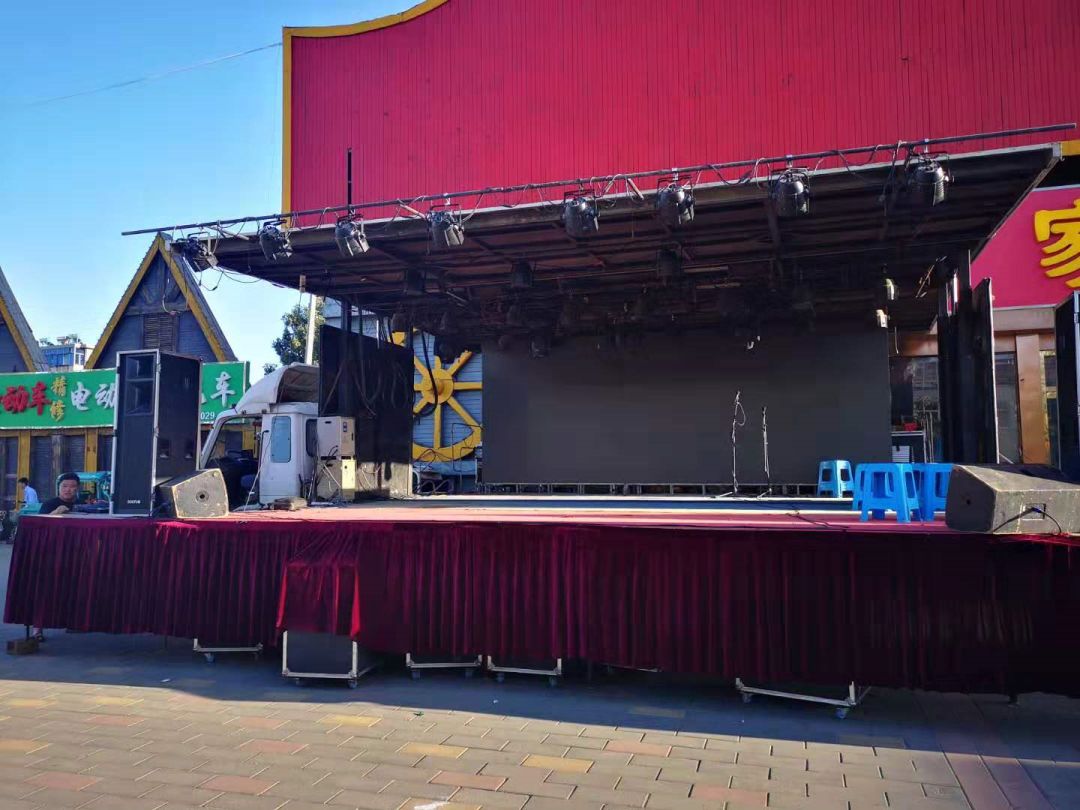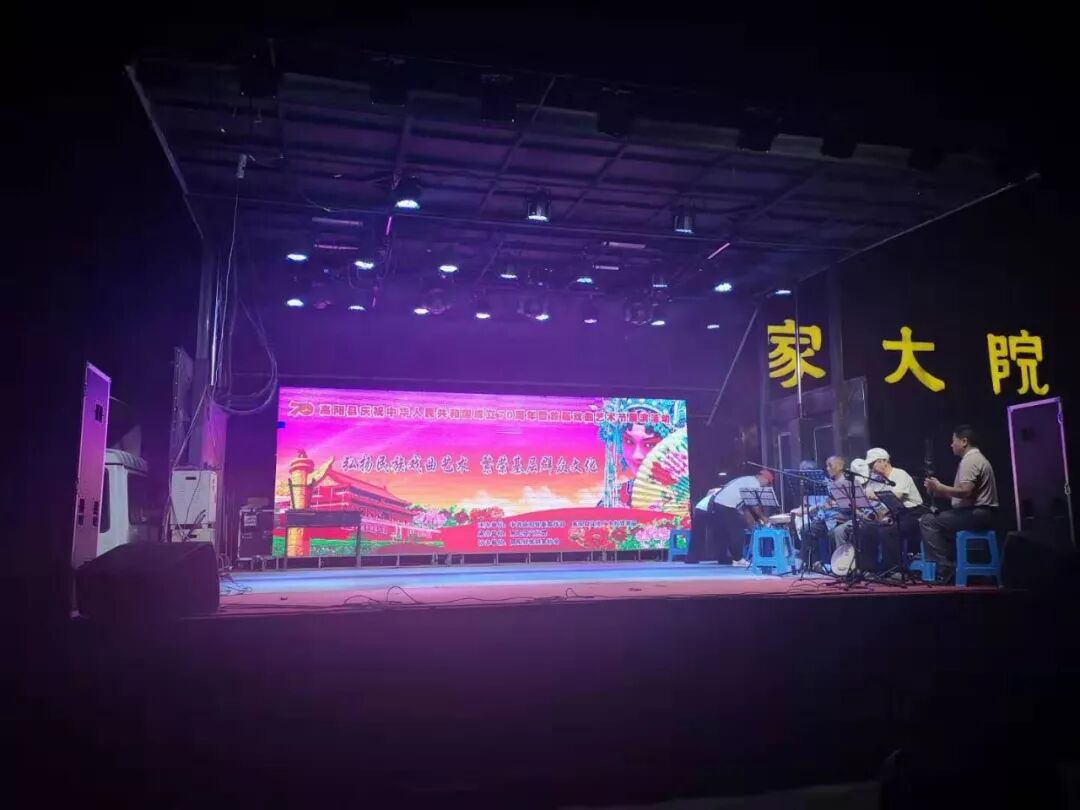 原计划晚七点的演出,文化馆的李大龙老师和其他工作人员不到五点就赶到了现场,在烈日炎炎下紧张地开始工作。数不清的线路、灯光、电子屏幕、舞台布置。。。李大龙有条不紊,乱中有序。他是高阳城的明星脸儿,时不时地有人路过亲切地和他打声招呼,尽管满头大汗,浑身尘土,但是他依然笑容满面,气定神闲,同时回应四面八方。
