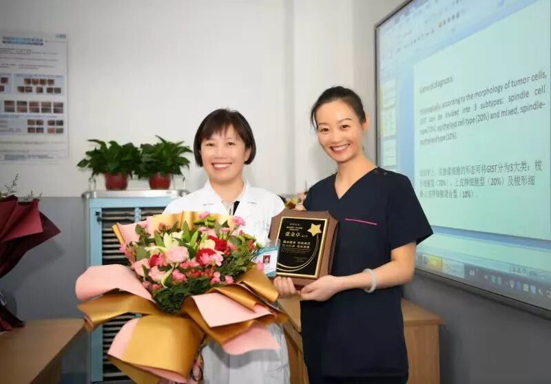 陈氏口腔的石红先副院长为消化内三科赠送鲜花
