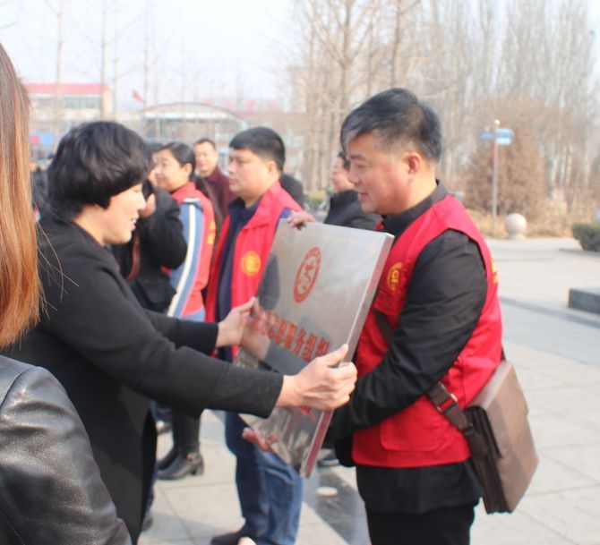 2018年3月5日又在宣传部的带领下举行高阳县“学雷锋志愿服务年”活动启动仪式,协会秘书长牛爱霞作为志愿者代表做表态发言,进行宣誓。30多名义工与交警一起执勤。