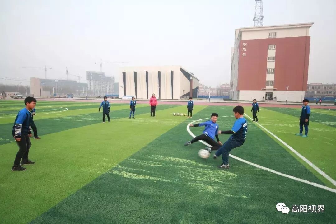 教学楼西侧为300米的环保操场,校园足球、篮球、羽毛球、排球拥有标准的训练场地。