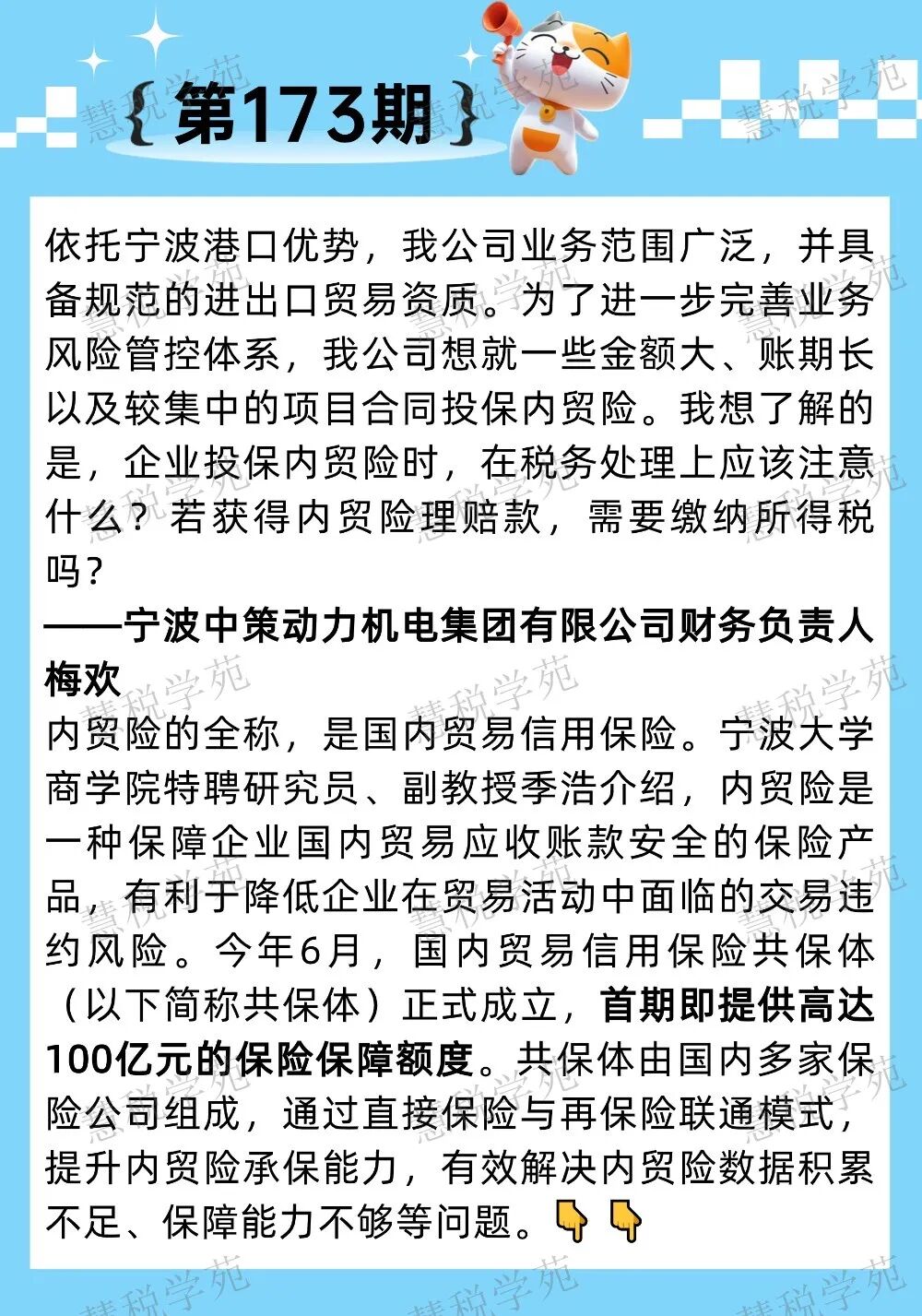 【财税指南173期】企业获得内贸险理赔款,需要缴纳所得税吗?