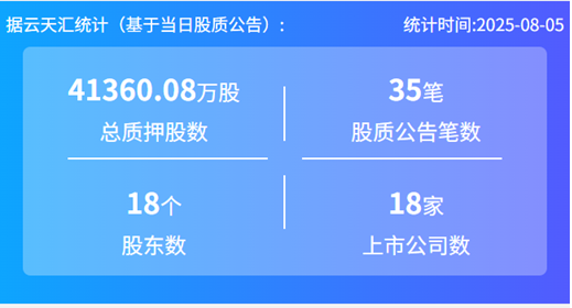 2025年8月5日,股票质押总质押股数4.14亿股,上市公司数18家,股质公告笔数35笔,股东数18个。