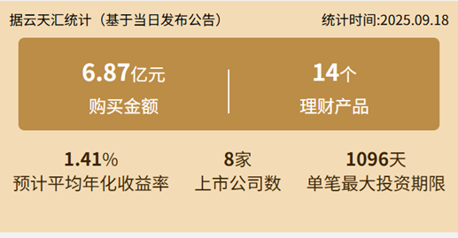 2025年9月18日,上市公司购买理财金额6.87亿元,共8家上市公司,理财产品14个。