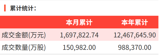 2025年6月16日,大宗交易成交金额16.44亿元,交易股票数76只,成交笔数146笔,流通股平均成交折价率96.94%,成交数量2.08亿股。