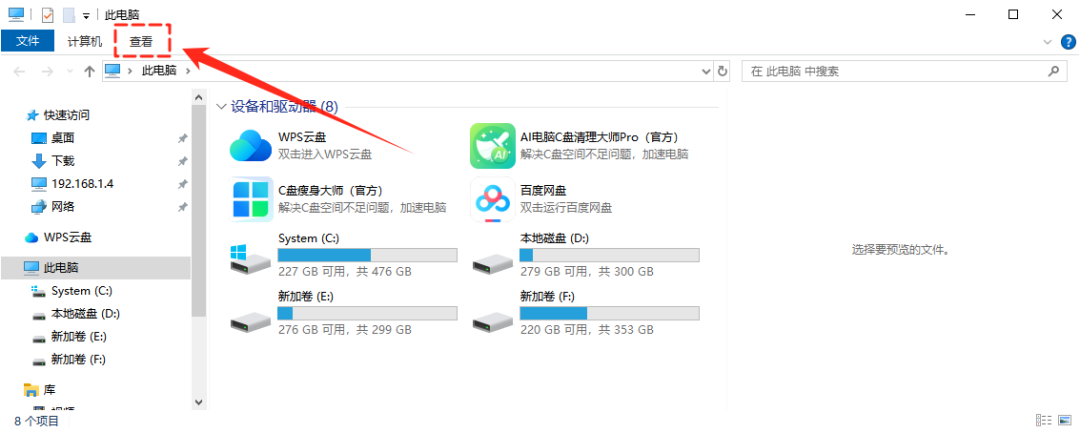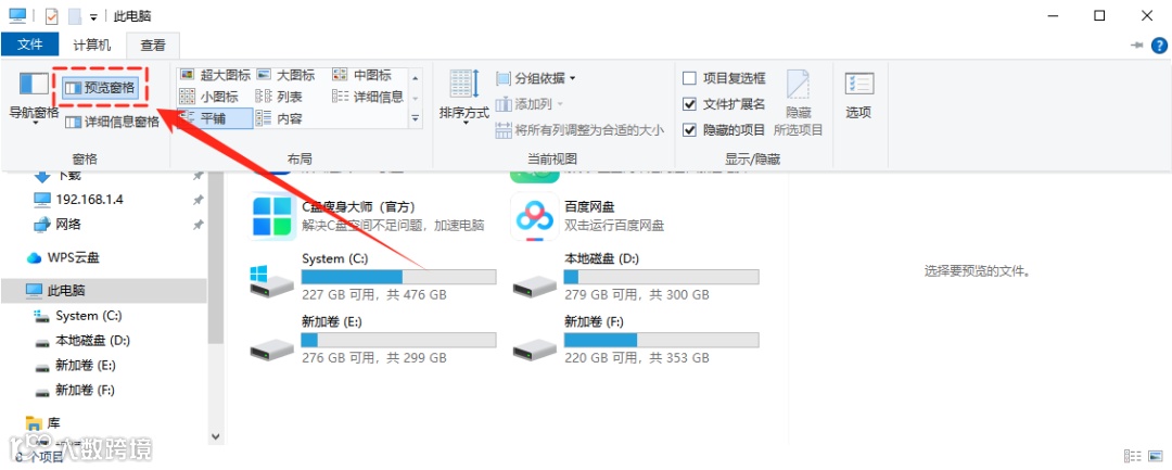 在任意文件夹界面,同时按下【Alt+P】组合键,预览窗口会立即隐藏,再次按下则重新显示,可快速实现一键切换。