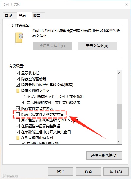 2.显示文件扩展名,便于识别文件类型;