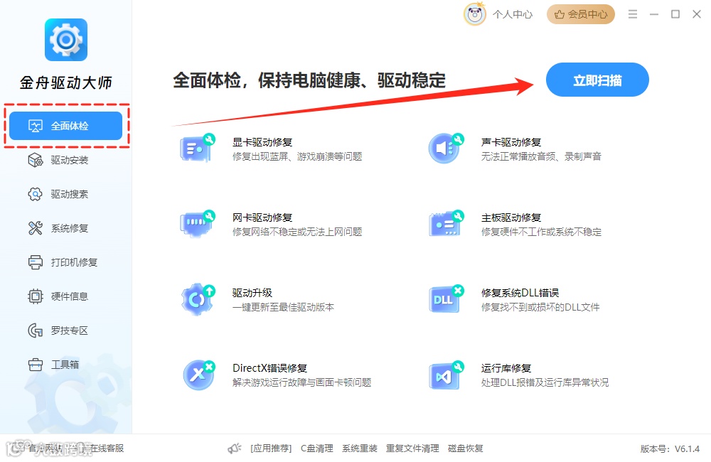 金舟驱动大师 官网下载:https://www.callmysoft.com/driver?loadPromotion=sFhMx80MHp0ae2TL