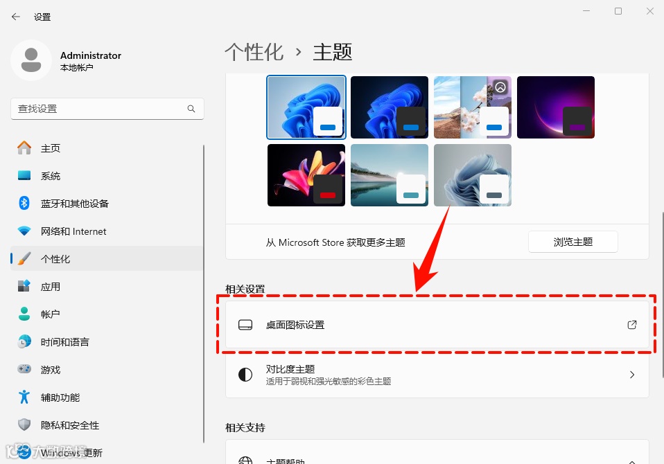 Step2:主题页面,鼠标往下移动找到并点击“桌面图标设置”。