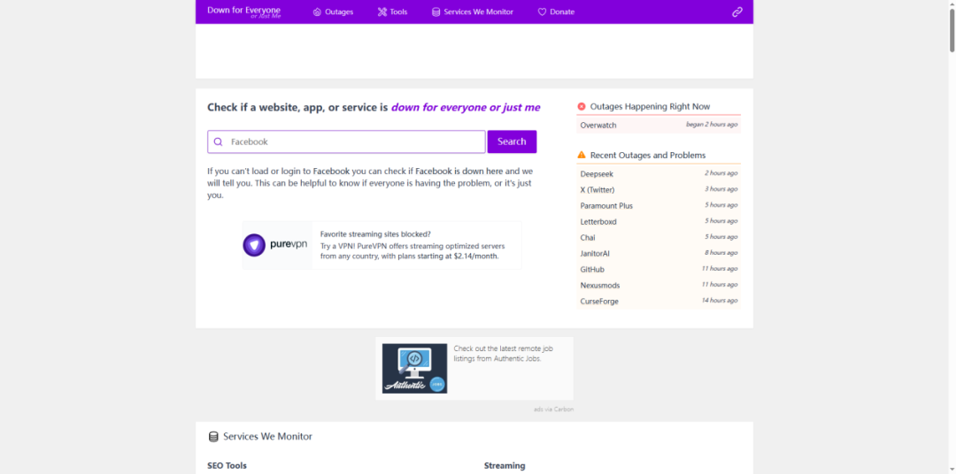 如果是访问知名网站出现502 Bad Gateway,可以先查看第三方状态监测网站,确认是网站问题而非本地网络问题。