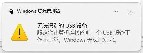 当您将USB设备插入电脑时,Windows系统会尝试与设备通信并识别其类型(是键盘、存储设备还是其他外设)。如果系统无法完成这个识别过程,就会显示“无法识别的USB设备”错误。这意味着电脑检测到了有设备连接,但无法弄清楚它是什么,或者如何与它正确通信,因此无法正常使用该设备。