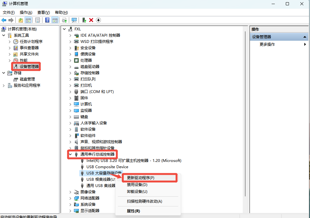 如果更新驱动无效,可以尝试“卸载设备”,然后重新连接USB设备,系统会自动重新安装驱动。