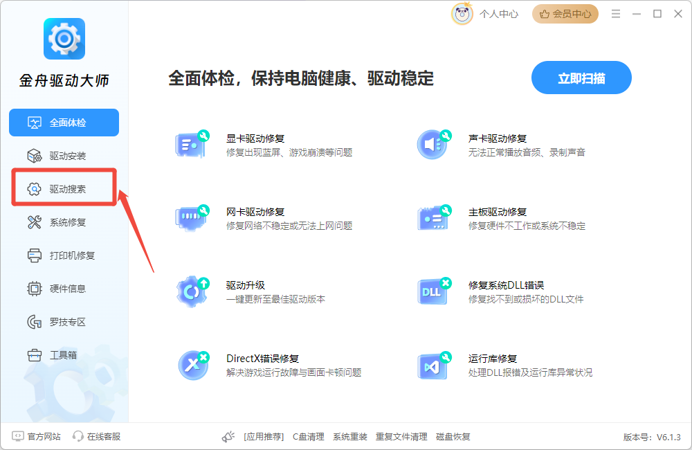 金舟驱动大师 官网下载:https://www.callmysoft.com/driver?loadPromotion=sFhMx80MHp0ae2TL