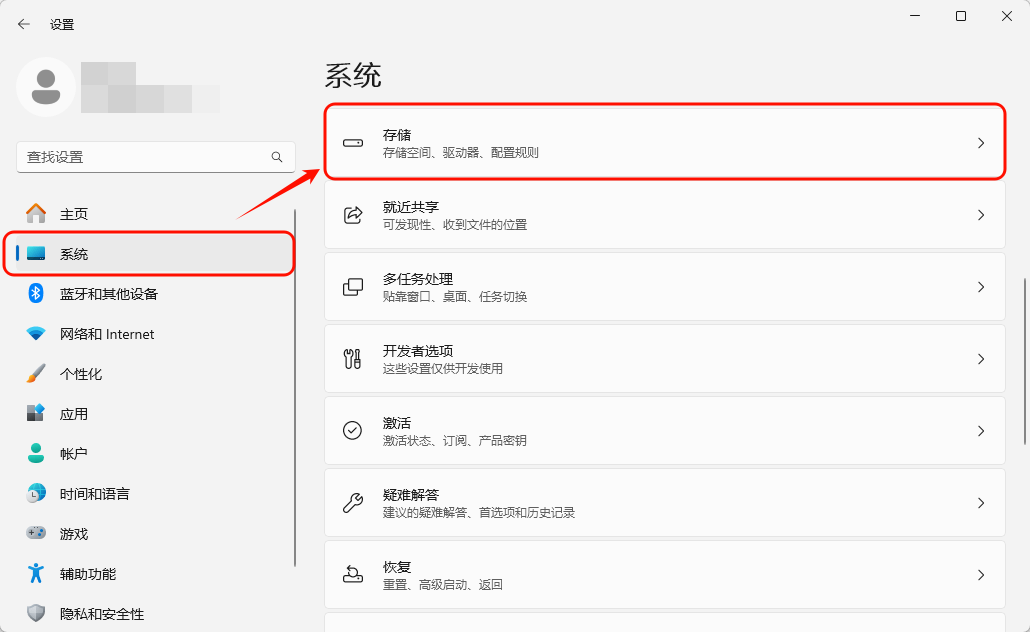 Step1:按Win+I,进入“系统→存储”。