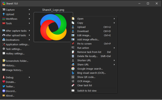 是一款开源的截图工具,功能强大且完全免费。其支持全屏截图、区域截图、窗口截图等多种方式,且具备 GIF 动画录制功能,非常适合制作短视频或动画教程。但是需要注意的是:ShareX 的界面相对复杂,但对于追求功能丰富的专业用户来说,它是一个非常有竞争力的选择。此外,ShareX 还支持多种导出格式,确保用户能以最佳方式分享截图。