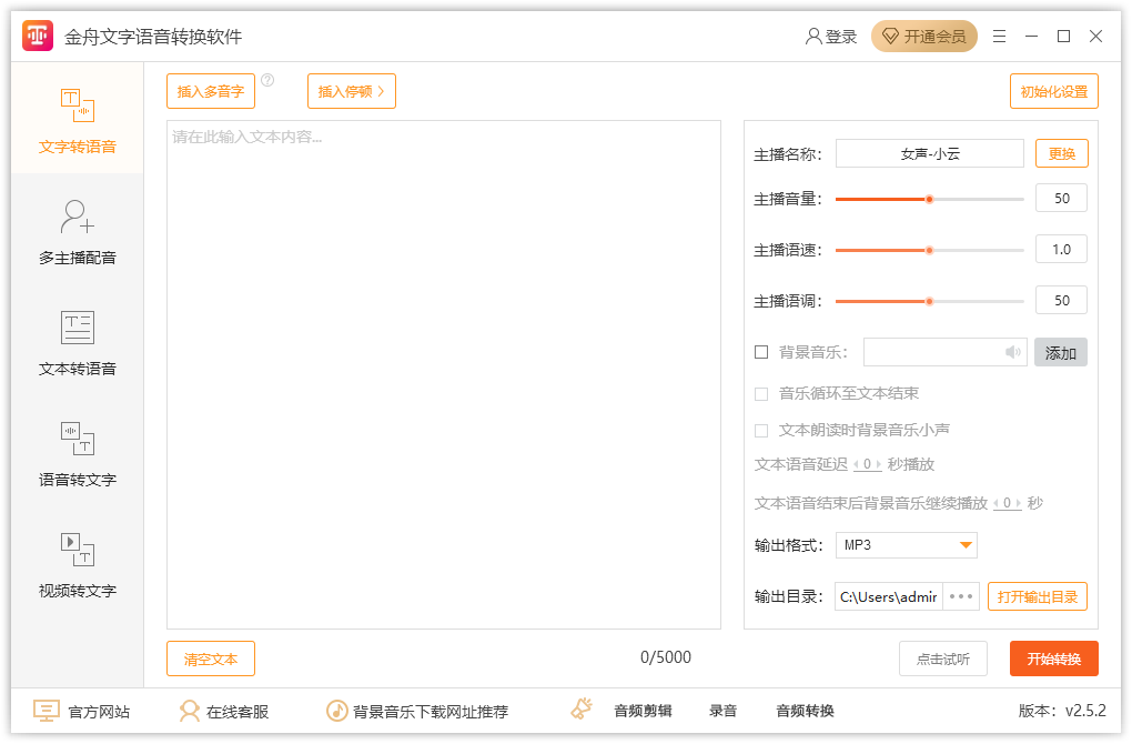 这是一款专业的文字语音转换软件,分别满足用户对文字转语音、多主播配音、文本转语音、语音转文字以及视频转文字的需求。文字转语音分别支持四川、东北、浙普、粤语等多种方言,而且还有英文和日语。转换时还能自定义调节语音语速、音量、音调等功能,能适应商场店铺广告、影视制作、交通播报等多种场景。使用该软件可以让你更方便地对文字语音进行转换!