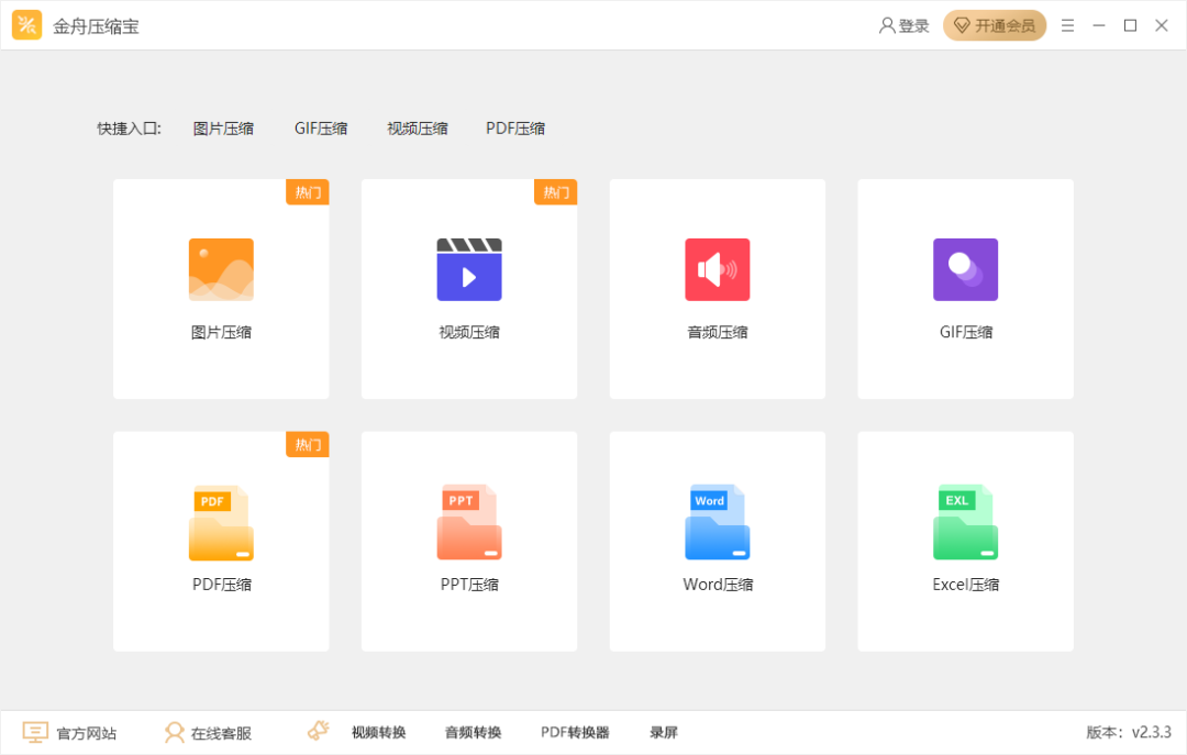 这是一款功能全面,支持视频、GIF、图片、音频、文档压缩的国产软件,支持对PDF、PPT、Word、Excel进行压缩提供快速压缩模式,告别繁琐,快速上手!