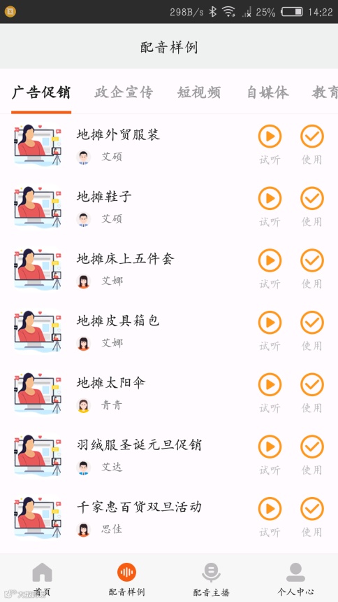 制作配音作品时,可根据自己的内容在配音样例中找到合适的模板,直接选择使用会更加方便