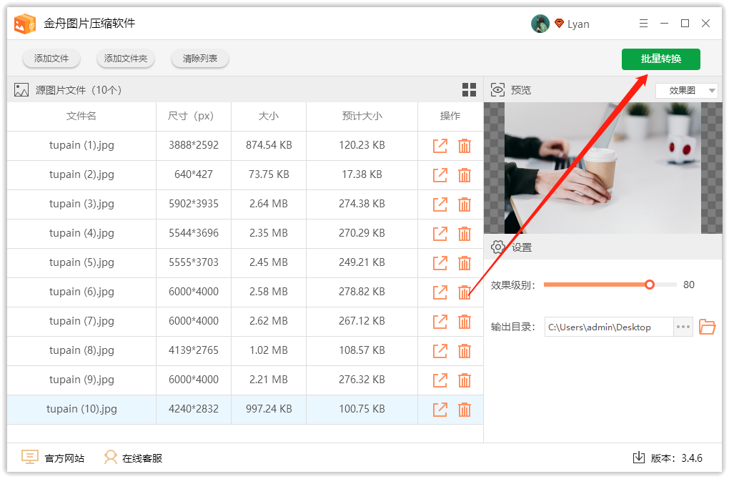 最后一步,直接点击右上角的“批量转换”就可以了