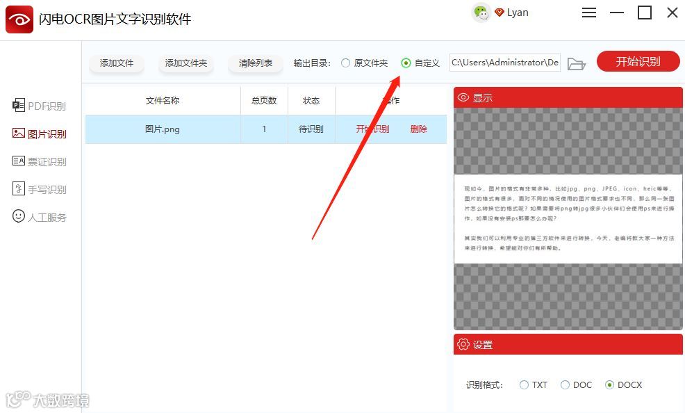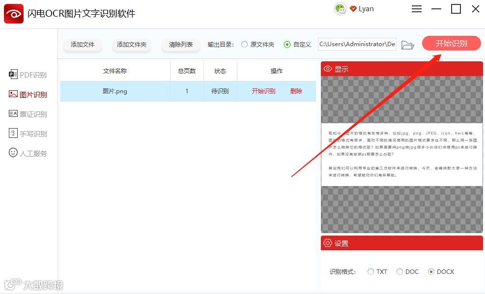 第三步、添加后,选择软件右下角的“识别格式”,如:DOCX