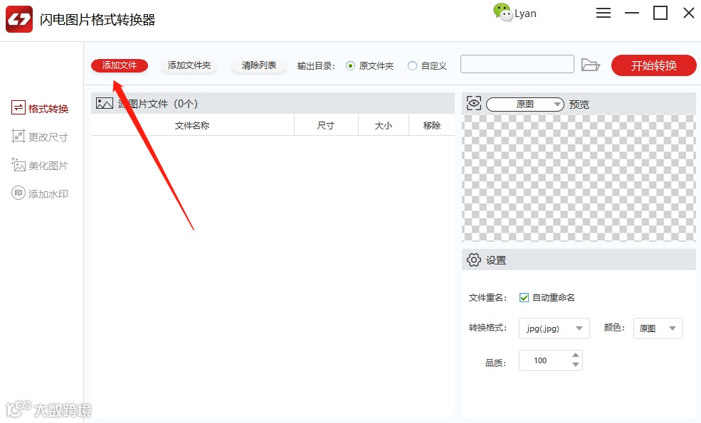 第三步、然后选择“添加文件”,将需要转换的图片一键上传到软件上。