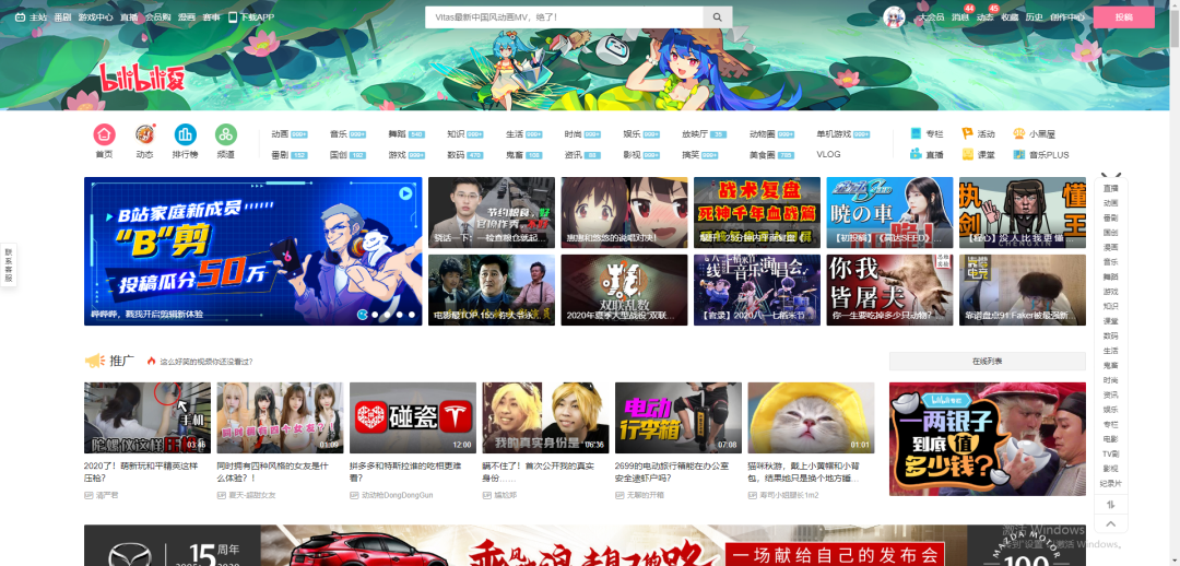 和A站不同的是,B站的用户人群更为年轻化,用户人群对于二次元动漫的粘性也更强,站内的视频也是以鬼畜、动漫、番剧为主。