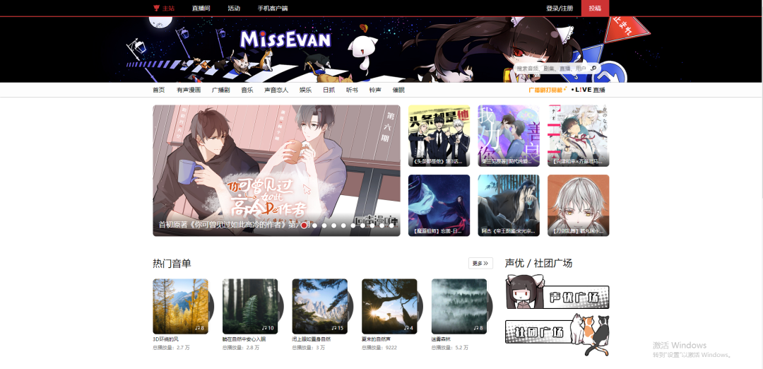 M站:猫耳FM,属于一家音频网站,各种的广播剧、有声漫画、有声小说、电台节目都可以在里面找到。