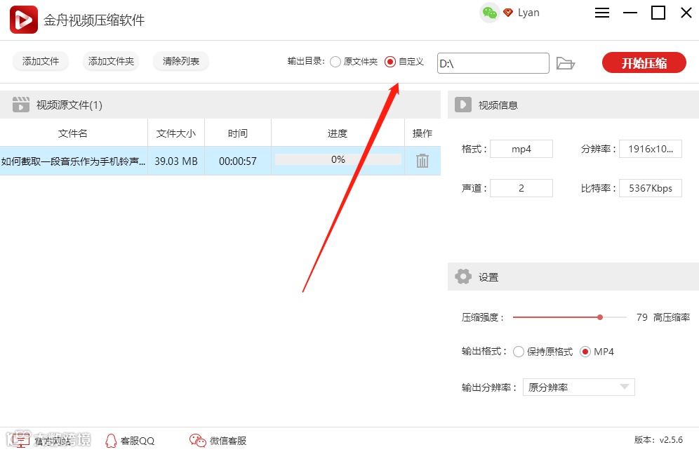 第三步、这里默认的视频存储路径是原文件夹,勾选“自定义”可重新选择修改。