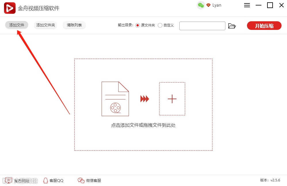 第一步、首先,将下载好的软件打开,点击“添加文件”,将需要压缩的视频上传到软件中。